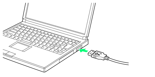 パソコンのUSB端子に、PC接続用USB Type-CケーブルのUSBプラグを差し込む