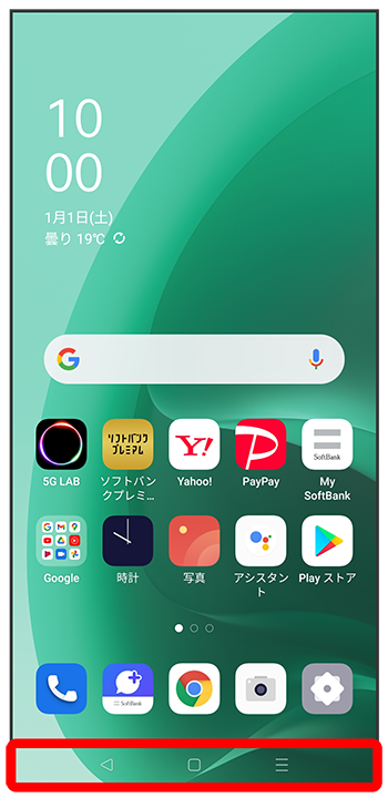 画面下部のアイコンが表示される領域を「ナビゲーションボタン」と呼びます。アイコンをタップして操作できます。
