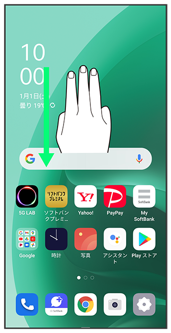 3本の指で画面を下にドラッグすると、表示されている画面のスクリーンショットを撮ることができます。