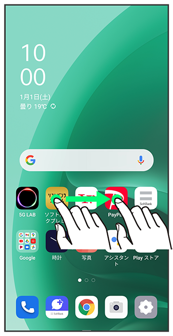 ホーム画面でフォルダに入れたいアイコンをロングタッチ