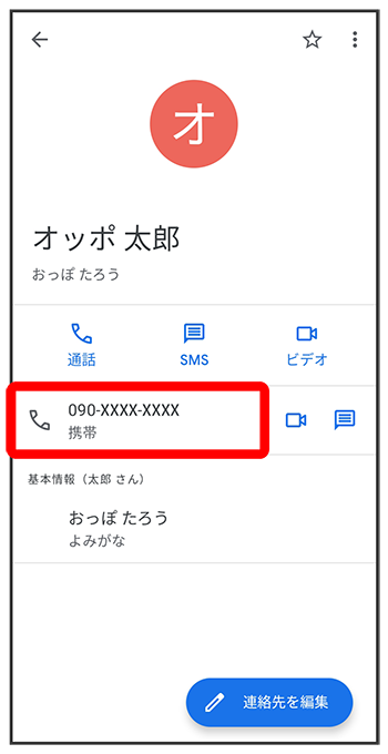 対象の連絡先をタップ