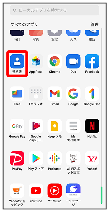 連絡先画面が表示されます。