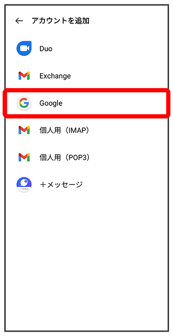 ここではGoogleのメールアカウント追加を例に説明しています。