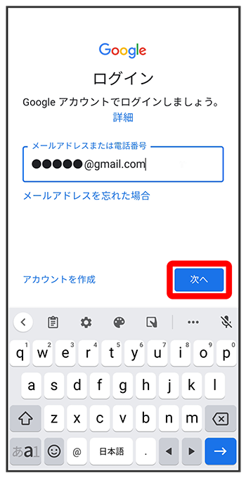 アカウントのログイン画面が表示されます。
