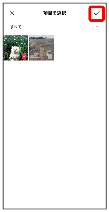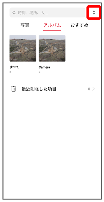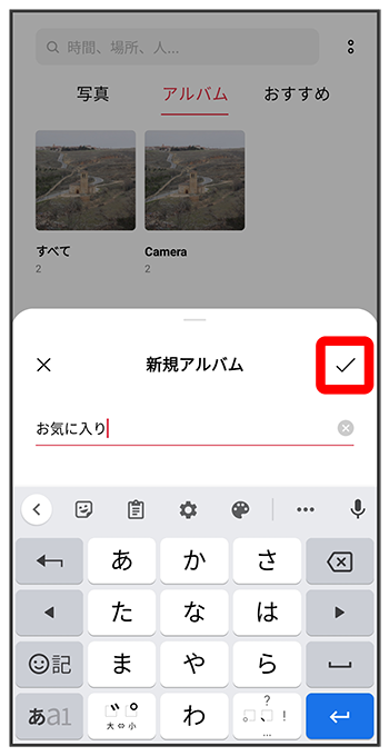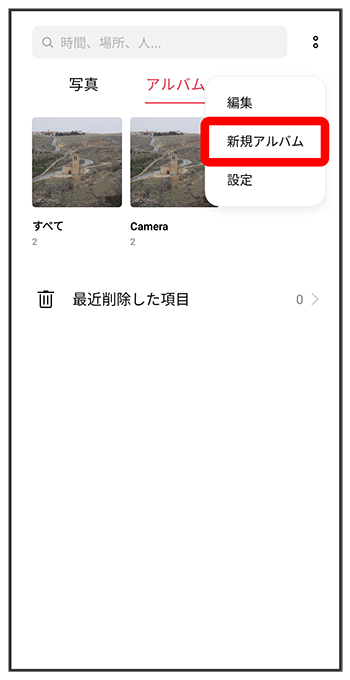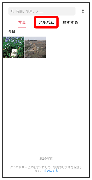アルバム画面で写真/動画を追加するアルバムをタップ