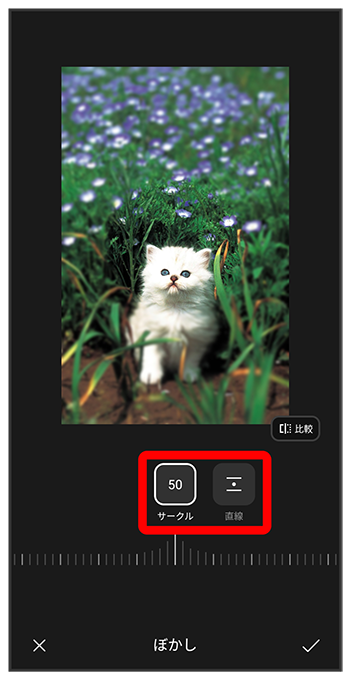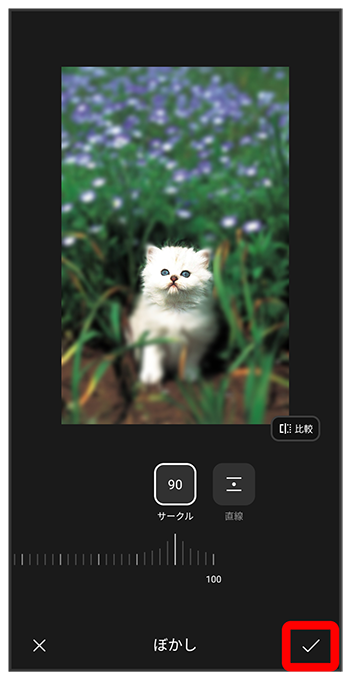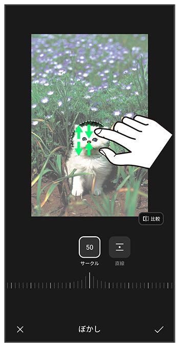 画面をドラッグ/ピンチして、ぼかしの位置や範囲を調節