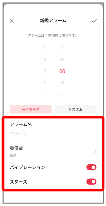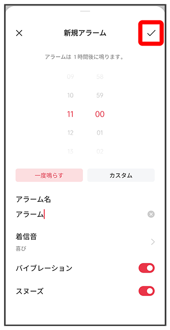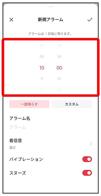 アラーム設定時刻になると、アラーム音や振動でお知らせします。