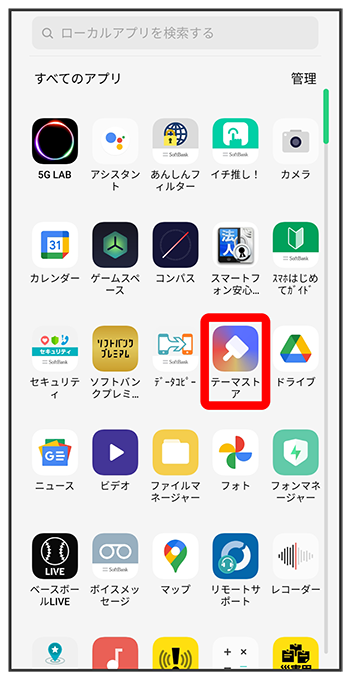 テーマストア画面で設定する壁紙を選択画面の指示に従って操作こちらで検索できます