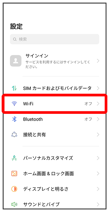 Wi-Fi設定画面で画面の指示に従って操作MACアドレスを確認する