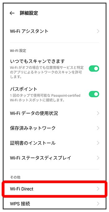 Wi-Fi Directを利用すると、Wi-Fiネットワークやインターネットを経由せずに、ほかのWi-Fi Direct規格対応機器と、簡単にWi-Fi接続することができます。