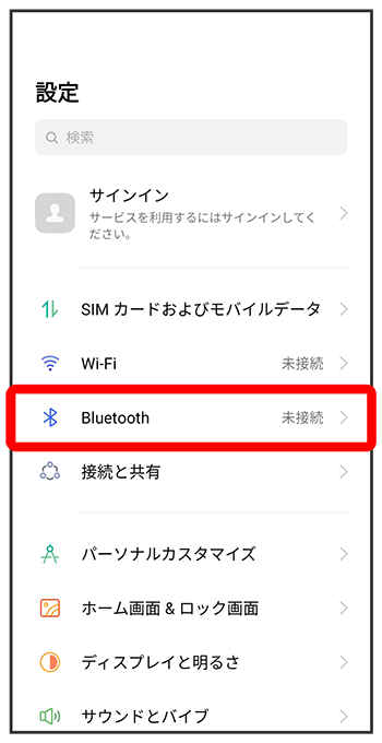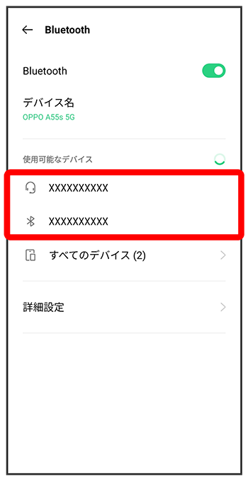 - 「使用可能なデバイス」欄に、近くにあるBluetooth®機器が表示されます。