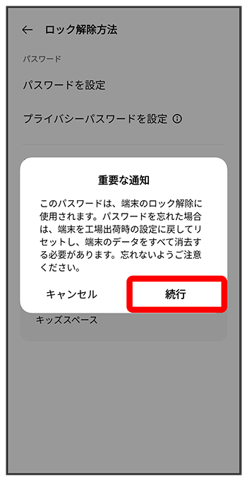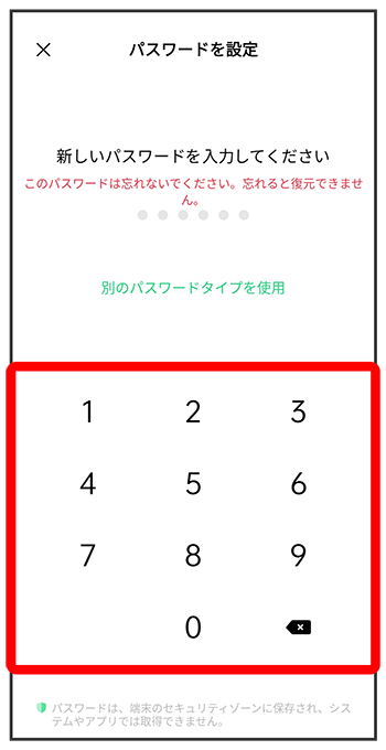 ロック画面パスワードの入力画面で//新しいパスワードを入力新しいパスワードを再度入力