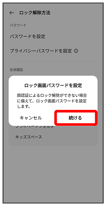 - ロック画面パスワードをすでに設定しているときは、ロックを解除する操作を行います。