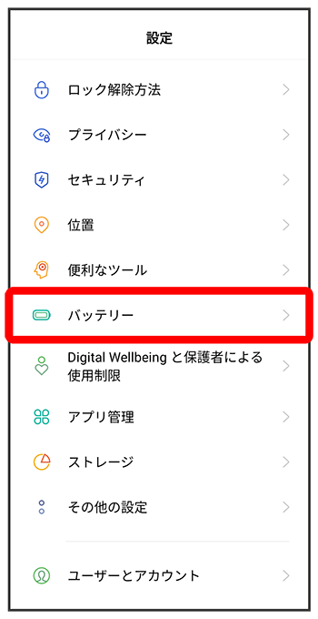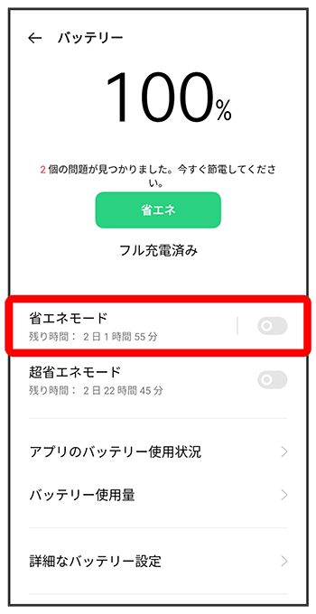指定したバッテリー残量で省エネモードが有効になるように設定する