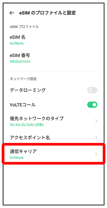 選択した通信事業者が設定されます。