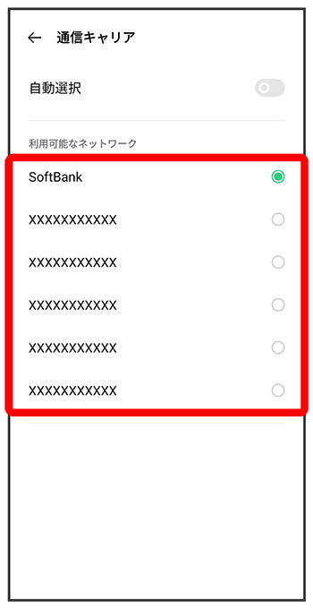 - 自動で最適な通信事業者に接続する場合は、再度をタップします(