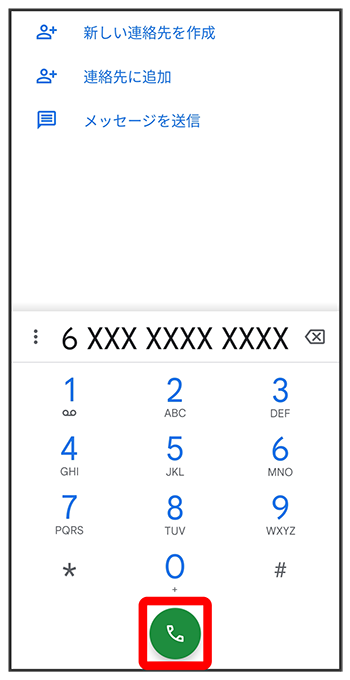 国番号のあとに相手の電話番号(先頭の「0」を除く)を入力