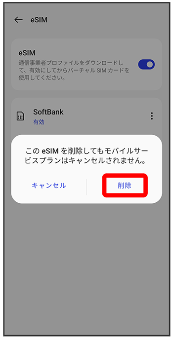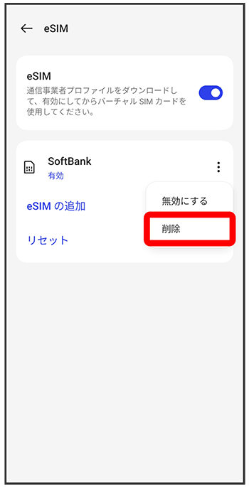 eSIMが消去されます。