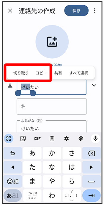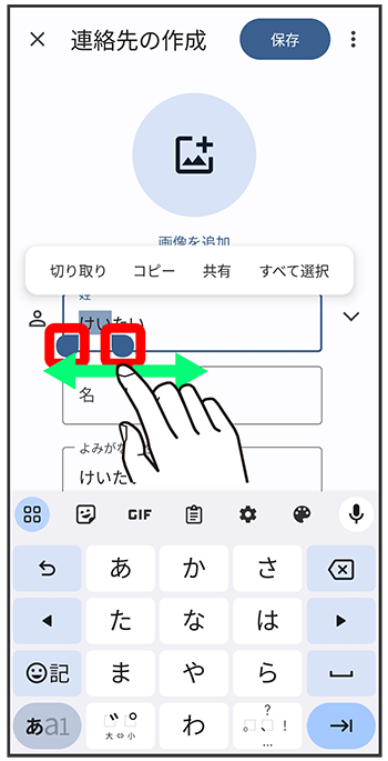 入力済みの文字をロングタッチ