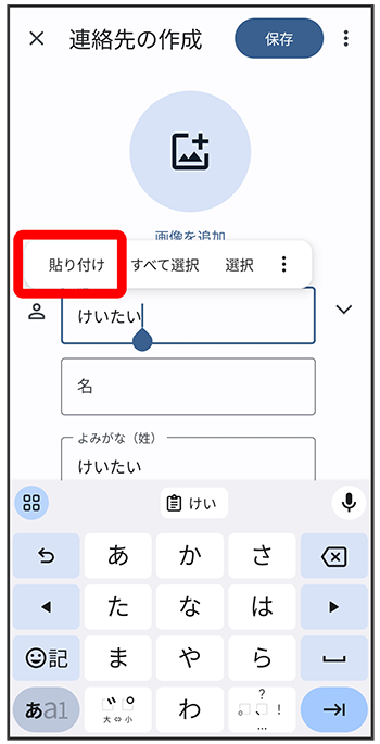 貼り付ける位置でタップ