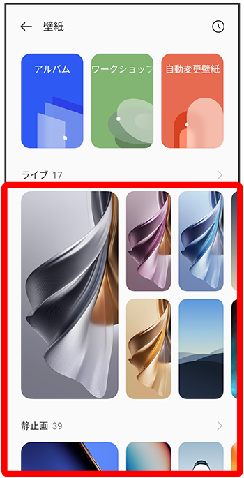 - 選択した壁紙によっては、操作が異なる場合があります。画面の指示に従って操作してください。