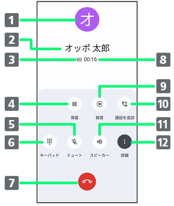 通話中は、アイコンをタップすることにより、次の機能が利用できます。
