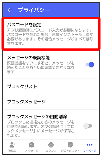 (+メッセージ)を開く際にパスコードの入力が必要になります。