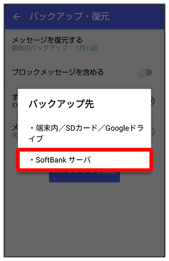 メッセージデータをSoftBankサーバにバックアップする