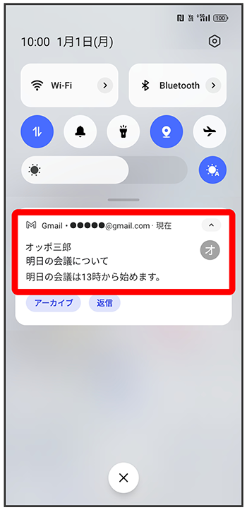 - 新着メールが2件以上あるときは、通知をタップするとメールの一覧が表示されます。確認する新着メールを選択してください。