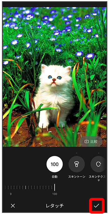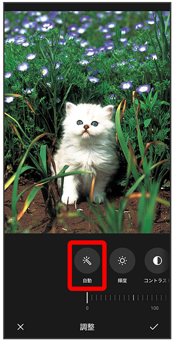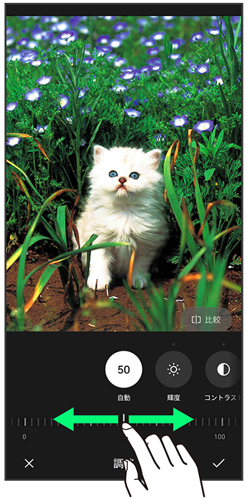 インジケータを左右にドラッグして、自動調整の強弱を調節