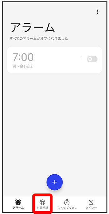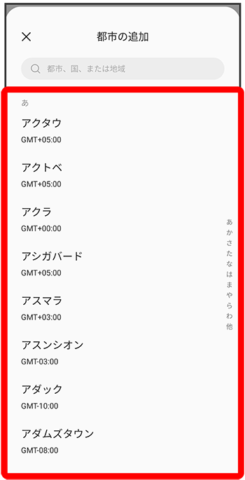 世界時計画面で都市をロングタッチ削除する都市を選択(都市の並び順を変更する