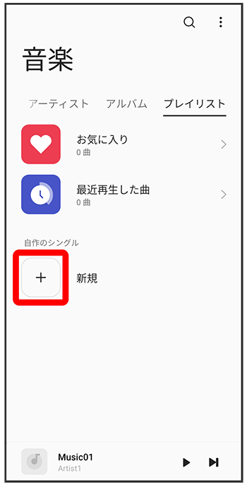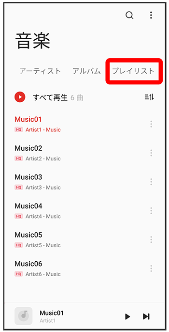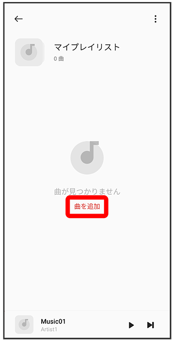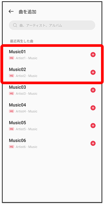 - 曲名が表示されない場合は、検索バーをタップ曲名/アーティスト名/アルバム名を入力