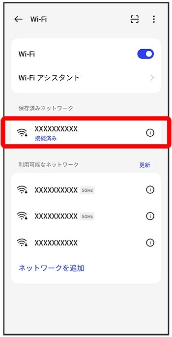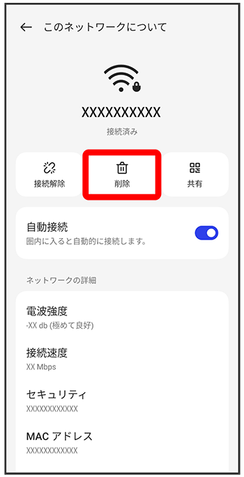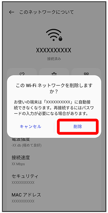 - Wi-Fiネットワークを削除すると、再接続のときにパスワードの入力が必要になる場合があります。
