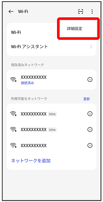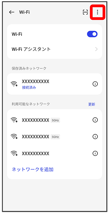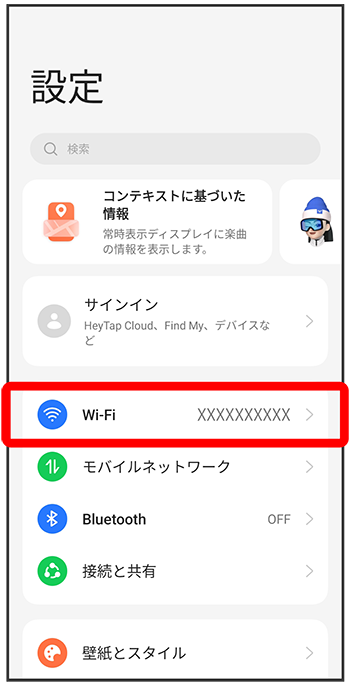 Wi-Fi設定画面が表示されます。