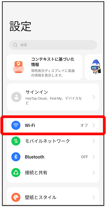 Wi-Fi設定画面が表示されます。