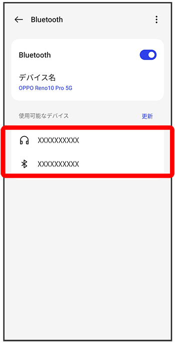 - 「使用可能なデバイス」欄に、近くにあるBluetooth®機器が表示されます。