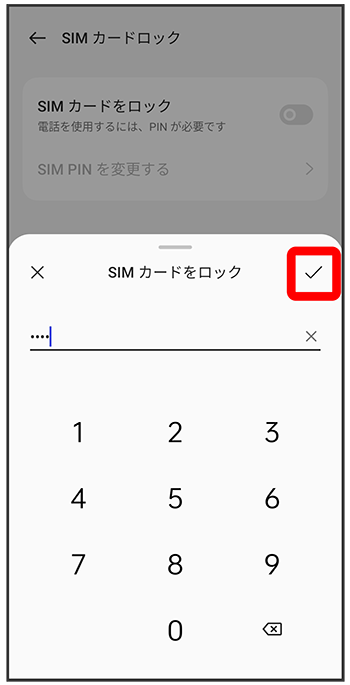 PINコードを有効にすることで、SIMカードを本機に取り付けた状態/eSIMが有効な状態で電源を入れたとき、PINコードを入力する画面を表示するように設定できます。