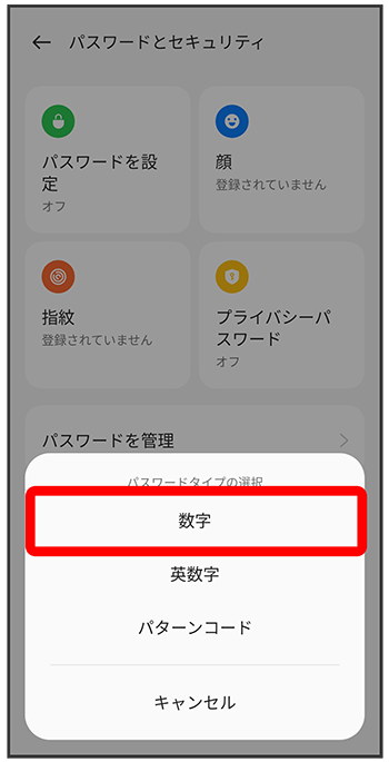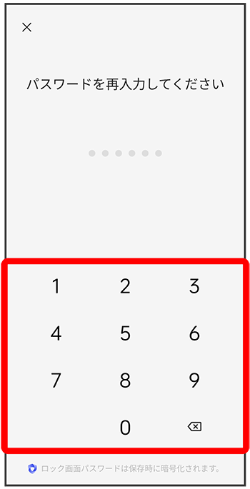 ロック画面パスワードの入力画面で///新しいパスワードを入力新しいパスワードを再度入力