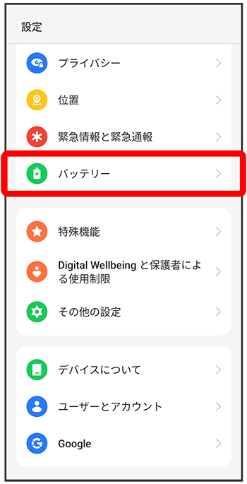 表示)にすると、バッテリーアイコンが