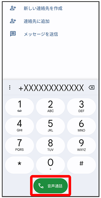 国番号のあとに相手の電話番号(先頭の「0」を除く)を入力