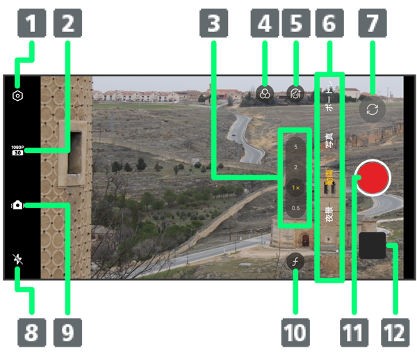 ロングタッチして目盛を左右にドラッグしても、ズーム倍率を切り替えられます。 - フィルター