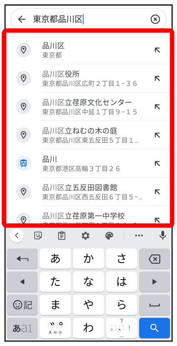 住所や都市、施設名などを入力選択候補から住所や都市、施設名などをタップ