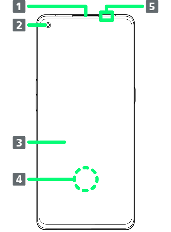 | レシーバー | 通話相手の声、音楽や動画などの音声が聞こえます。 |
