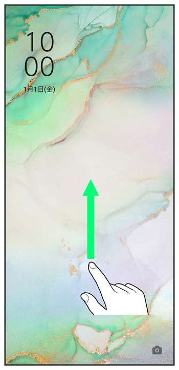 ロック画面を上にフリック/スワイプ