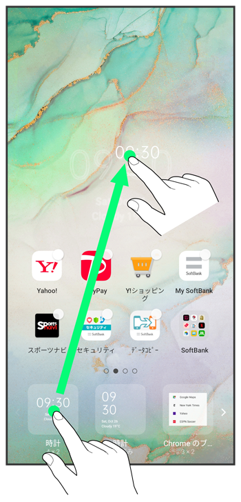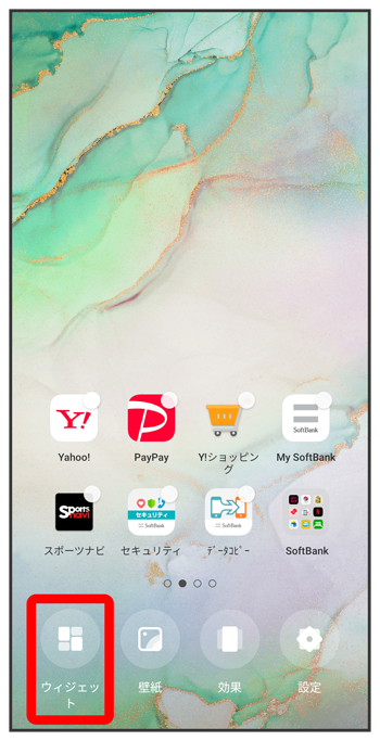 ホーム画面で対象のアイテムをロングタッチ移動したい場所にドラッグウィジェットやアイコンを削除する