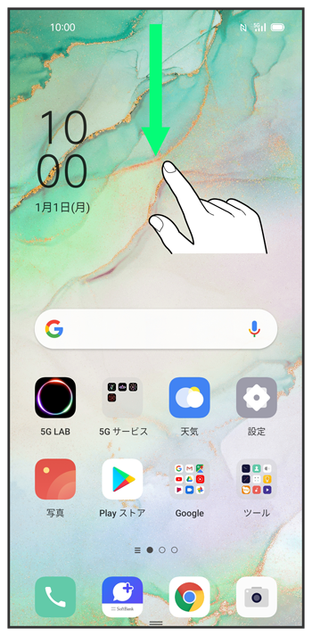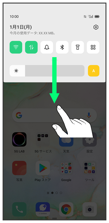 ステータスバーを下にフリック/スワイプ