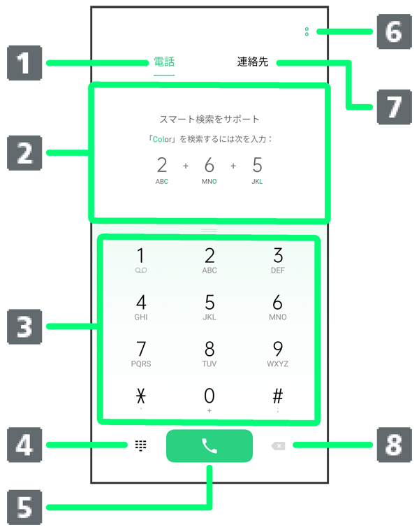 - 最後に入力した番号を削除します。ロングタッチすると、すべての番号を削除します。