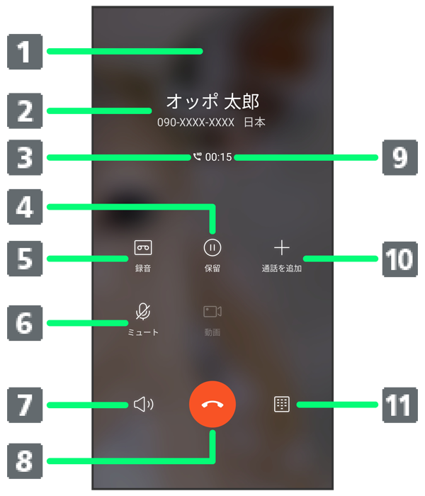 通話中は、アイコンをタップすることにより、次の機能が利用できます。