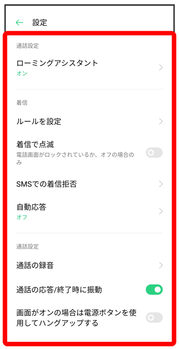 通話に関する設定ができます。設定できる項目は次のとおりです。