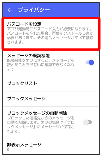 (+メッセージ)を開く際にパスコードの入力が必要になります。